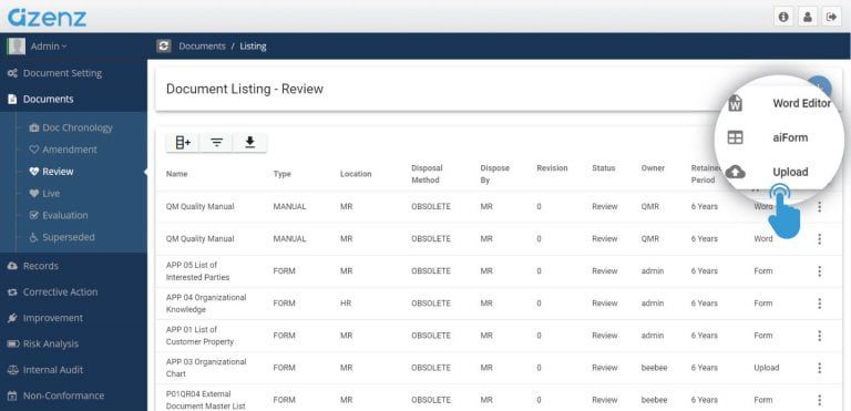 Aizenz system will automatically record all the versioning of documents when amendments were made.